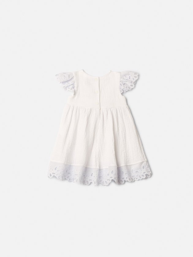O Vestido Infantil de Gaze com Laço e Renda traduz delicadeza e elegância em cada detalhe. Desenvolvido em gaze leve e macia, garante conforto e movimento natural ao vestir. O modelo apresenta recorte na cintura com leve franzido, criando volume suave na saia. As mangas em babado com aplicação de renda trazem charme artesanal, enquanto a barra finalizada com renda trabalhada valoriza ainda mais o acabamento. Conta com fechamento posterior discreto, facilitando o vestir. Ideal para eventos, celebrações ou produções sofisticadas, é uma peça atemporal que combina romantismo e leveza. Ref.: L2556