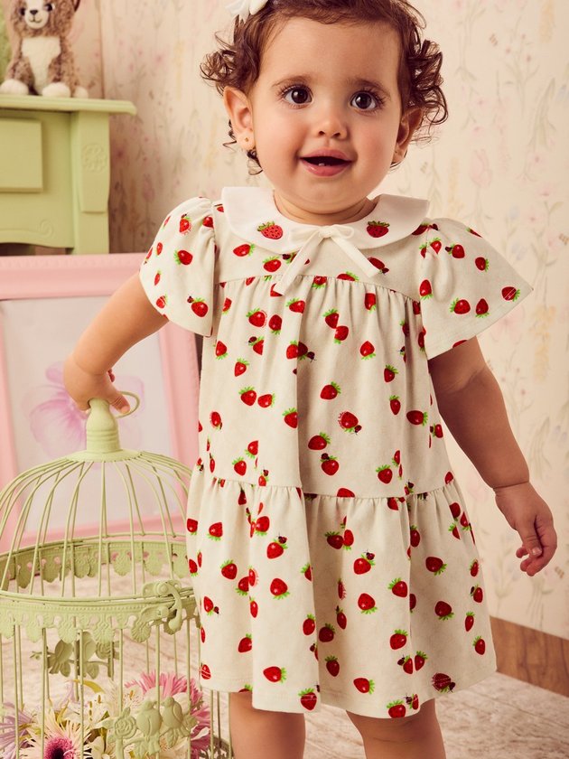 A doçura dos moranguinhos se une ao charme atemporal da gola boneca neste vestido infantil que transborda encanto. Confeccionado em tecido leve, acompanha com conforto cada movimento da pequena. Seu design delicado e versátil é perfeito para momentos especiais ou passeios cheios de estilo. Uma peça que traduz o universo lúdico e sofisticado da Animê, ideal para criar memórias inesquecíveis neste verão.