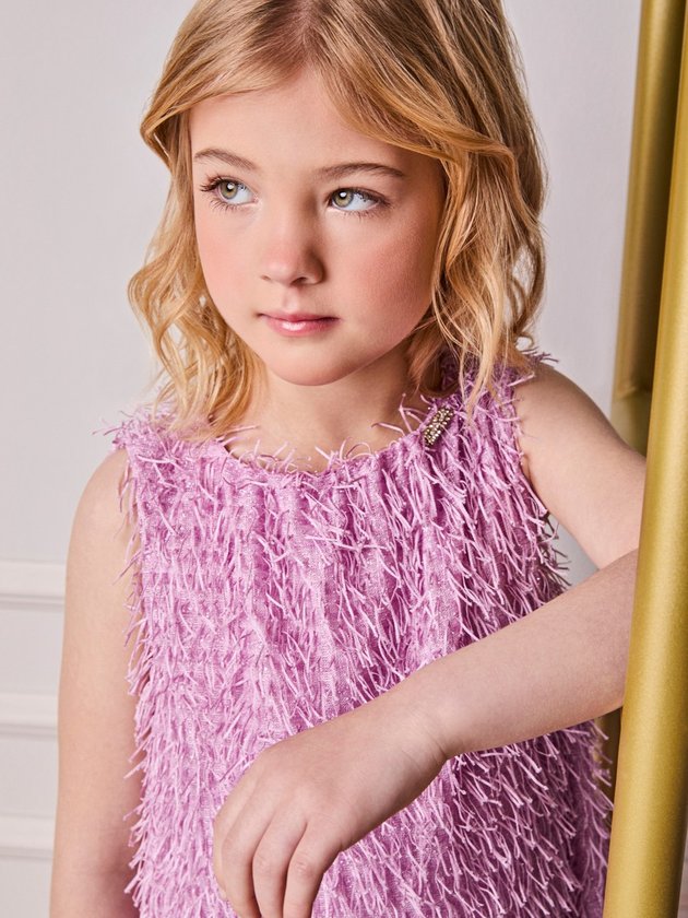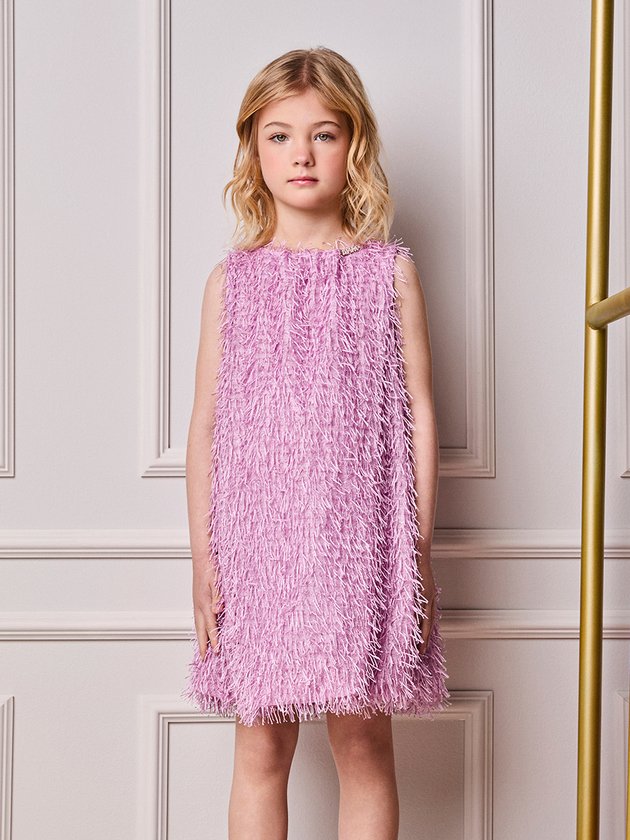 Este vestido aposta no volume como elemento de design. A modelagem balonê cria silhueta impactante e contemporânea, enquanto as franjas adicionam movimento e textura sofisticada. O tom lilás suaviza o visual, equilibrando ousadia e delicadeza. A construção é pensada para protagonismo, com acabamento impecável e leitura fashion clara. Uma peça expressiva, perfeita para looks autorais e marcantes. Ref.: N5578