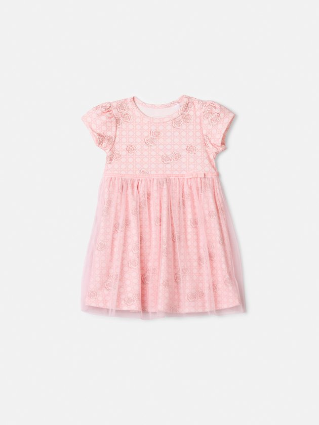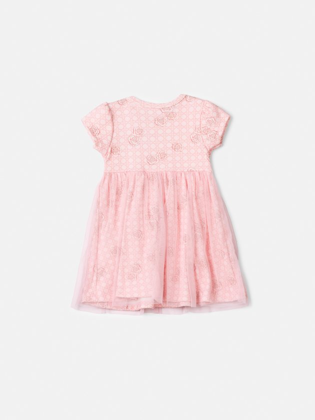 Vestido de Camélias com Tule Rosa Baby