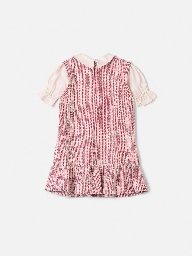Vestido Infantil Menina Animê de Tweed Cherry com Manga Bufante e Gola Boneca