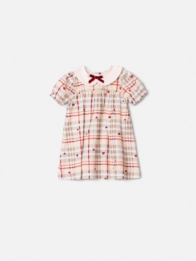 Elegância desde cedo. O vestido apresenta estampa xadrez refinada e ganha protagonismo com o laço em veludo aplicado na gola, criando um ponto de sofisticação irresistível. Uma peça que traduz perfeitamente o conceito de luxo infantil, ideal para ocasiões especiais e momentos memoráveis. Ref.: L2689