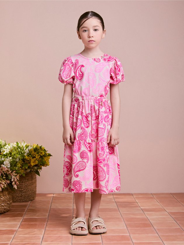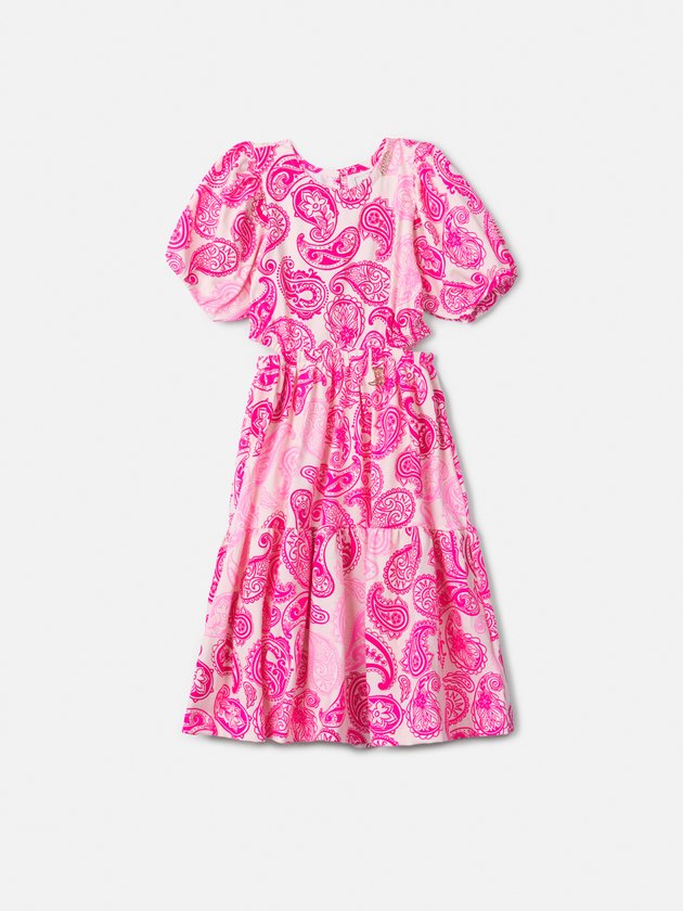 Vestido Infantil Paisley Rosa com Mangas Bufantes
