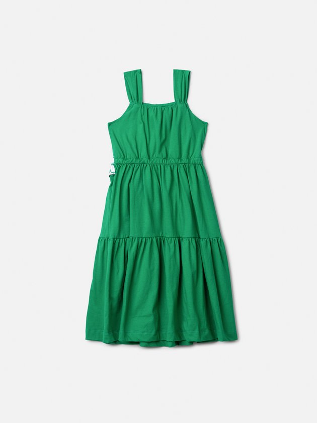 O vestido infantil Animê em verde vibrante é a escolha perfeita para ocasiões especiais e momentos cheios de estilo. Confeccionado em tecido leve e confortável, o modelo apresenta alças largas, caimento fluido em camadas e um charmoso cinto-faixa estampado com lettering da marca, que valoriza a cintura e traz um toque moderno ao look. O design sofisticado une praticidade e elegância, garantindo liberdade de movimentos para as pequenas. Ideal para festas, passeios ou até composições mais casuais, pode ser combinado com sandálias delicadas ou tênis fashionistas para criar produções versáteis e encantadoras.