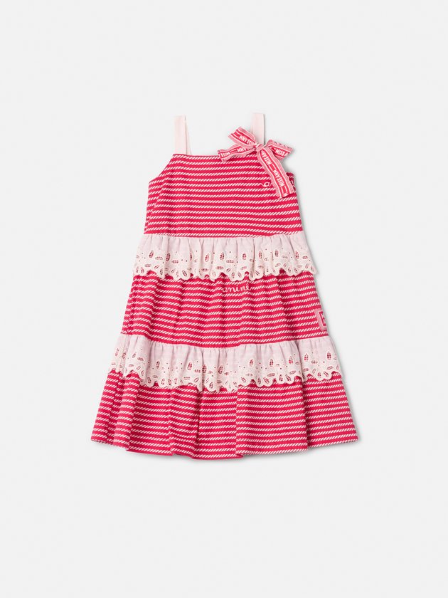 Vestido Infantil Vermelho Listrado com Renda
