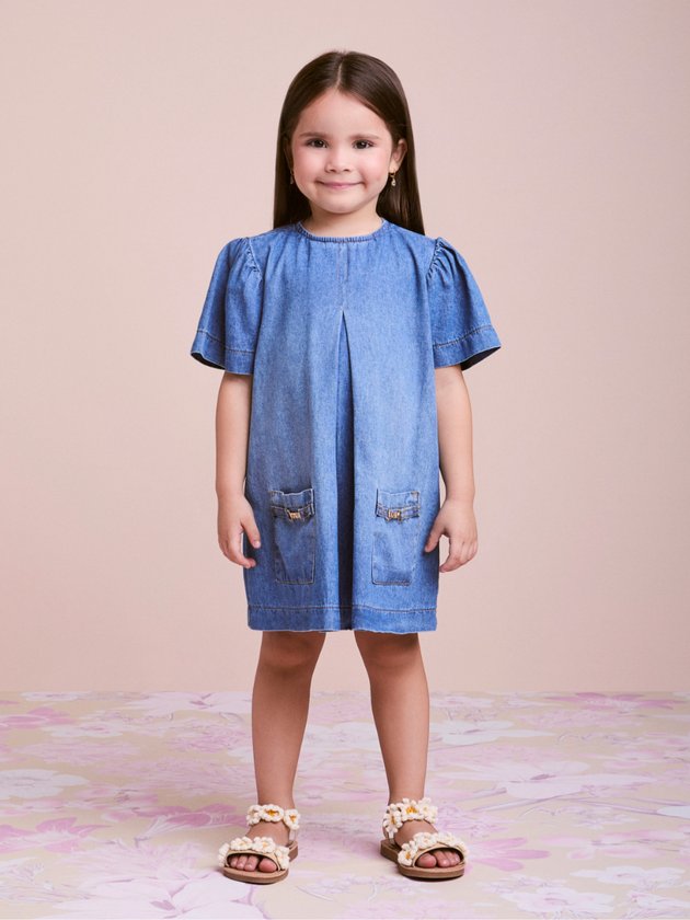 Com uma proposta moderna e atemporal, o vestido jeans Animê é perfeito para acompanhar os dias de verão com muito estilo e conforto. A modelagem soltinha ganha charme extra com as mangas levemente bufantes e a prega central, que adiciona movimento à peça. Destaque para os bolsos frontais, adornados com o pingente metálico exclusivo da marca, que reforça a identidade fashionista da Animê. Essencial para produções descomplicadas, mas cheias de personalidade! Ref.: P6216