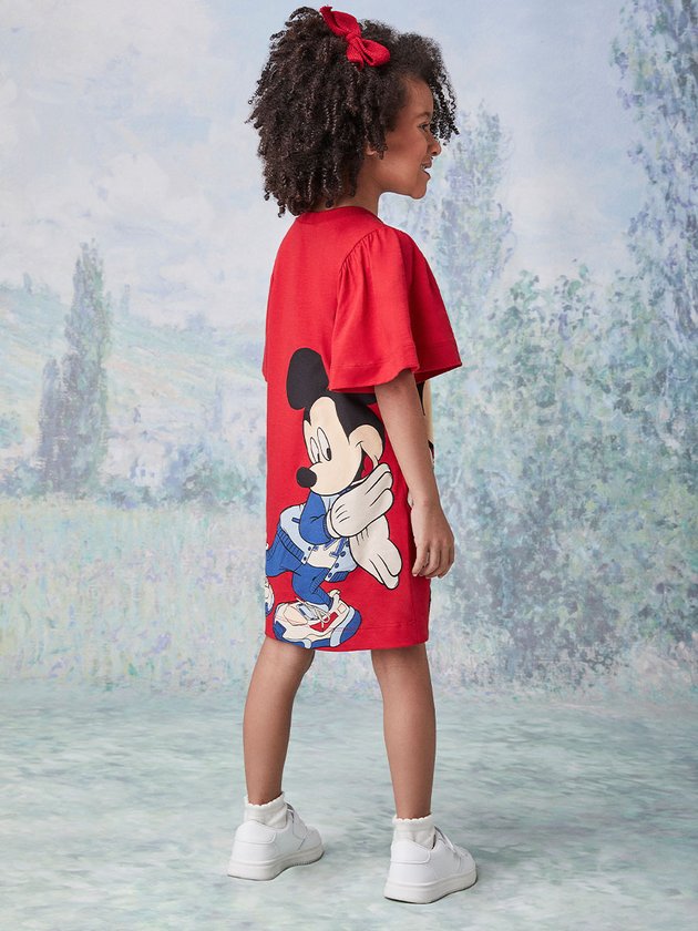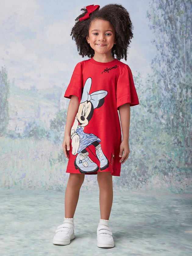 Este vestido é perfeito para ocasiões especiais. A peça traz uma linda estampa dos personagens Minnie e Mickey. O design amplo dá um toque de elegância à peça, enquanto os franzidos na manga acrescentam um toque de romantismo. O patch decorativo é um detalhe que deixa o vestido ainda mais especial. Composição: 100% algodão. Ref.: P5509