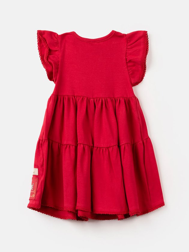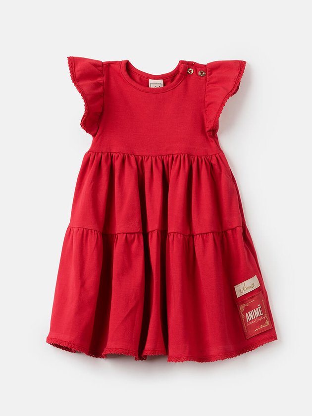 Ideal para ser usado em ocasiões especiais esse vestido vermelho Animê é puro charme com detalhes exclusivos, foi confeccionado em malha com modelagem marias, na parte frontal finaliza seu design com etiquetas decorativas costuradas próximo a barra e botões de pressão no ombro. Super fashion ele vai conquistar o coração das mamães. Composição: 96% algodão e 4% elastano. Ref.: L1878