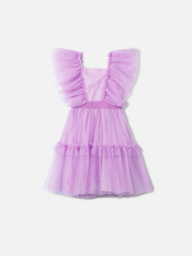 Vestido de Tule Lilás com Babados